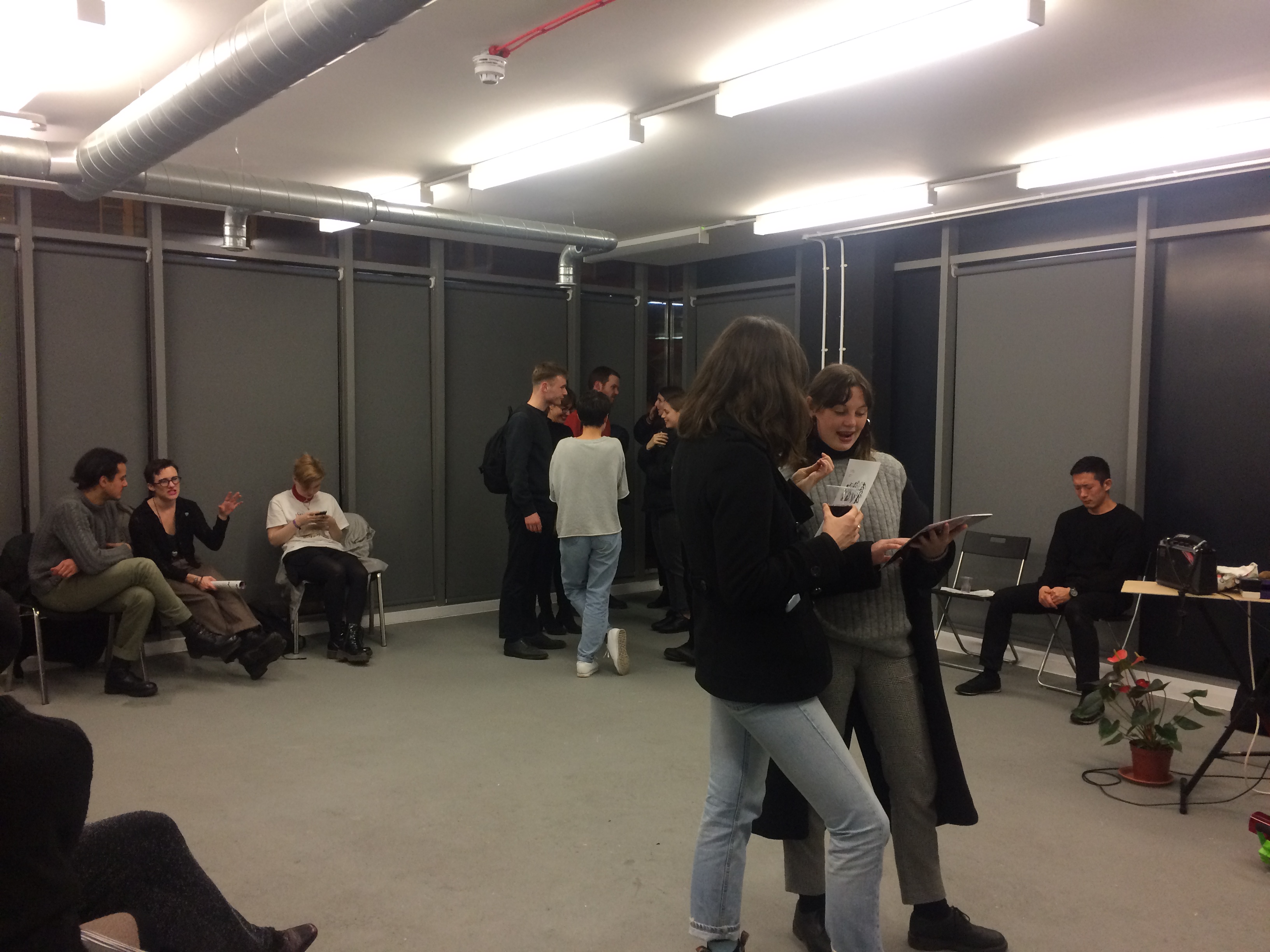 Performed at the Dyson Gallery, RCA, and repeated with 2 male actors at The Deptford XSpace, London, UK.